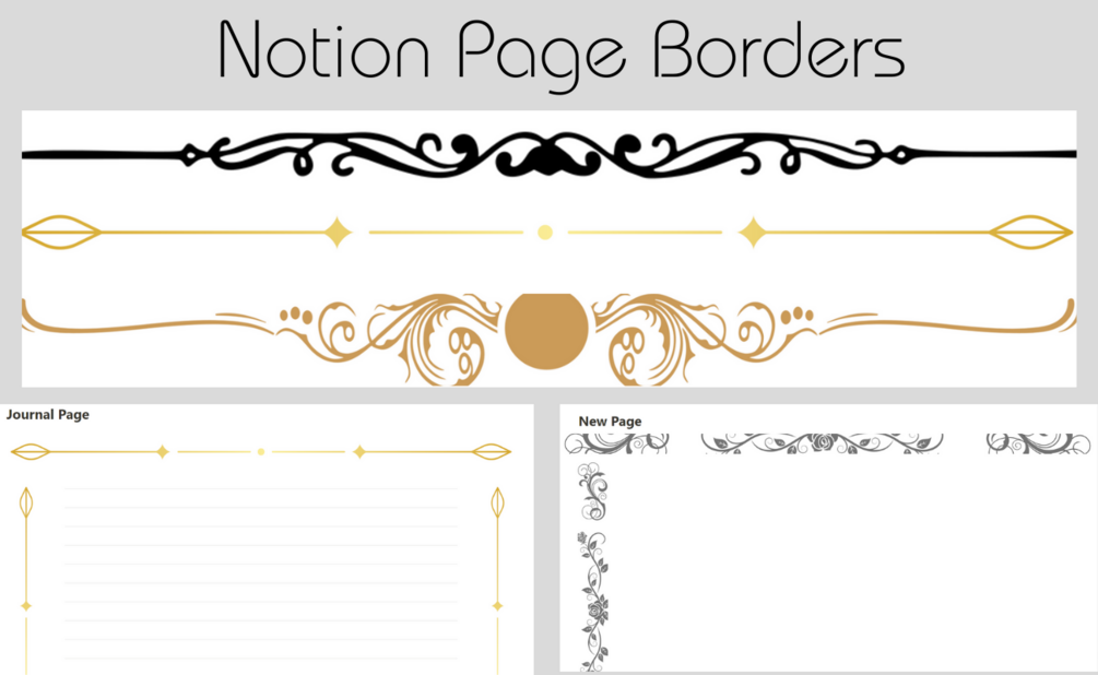 Take your Notion pages to the next level. These fancy border designs give your pages an elegant touch. You can choose from a variety of horizontal and vertical borders, and easily add them to your pages with no coding needed.